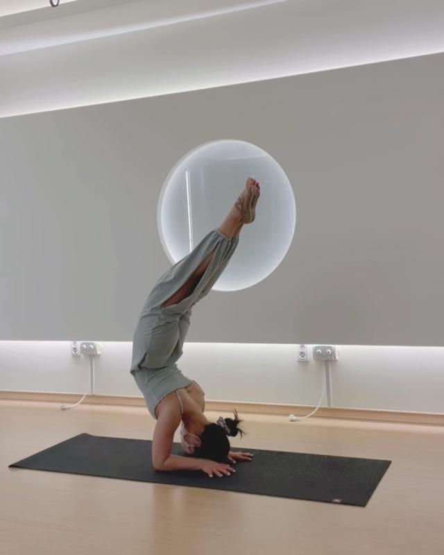 요가복 사서 신나니까 새벽 수업 끝나고 몸풀기🧤🧤요즘 살이 올라서 아사나가 잘 안된다, 살을 쪼까 빼야겄다 🙄