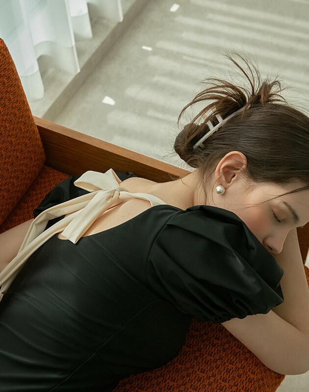 백리스 디자인으로 세련된 아웃핏을 연출하고,