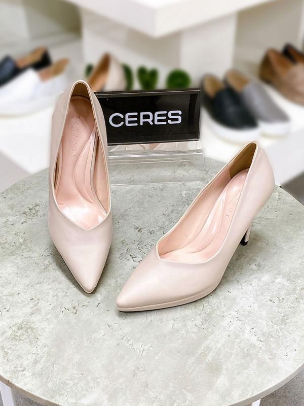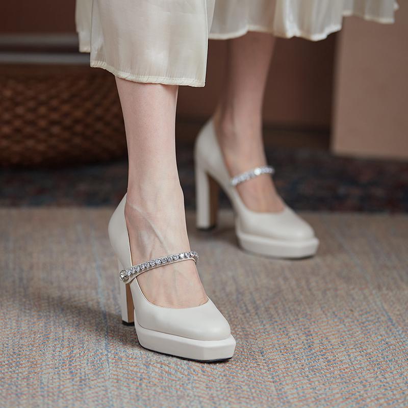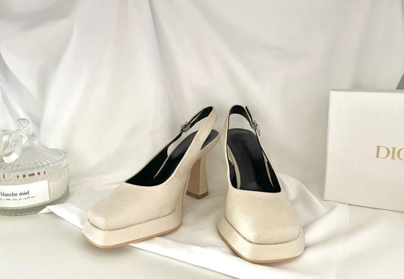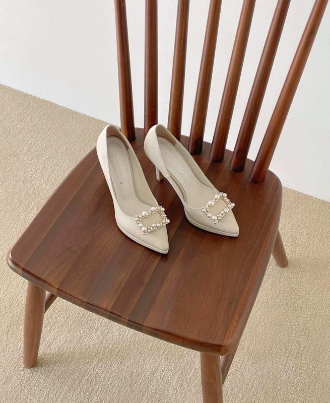크림 컬러 슈즈에 은은한 광택의 크림빛 진주 장식을 매치해
