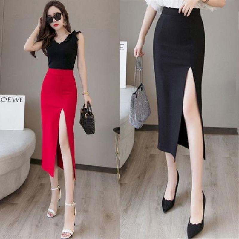 시원한치마 밴딩스커트 밴딩롱스커트 슬릿스커트