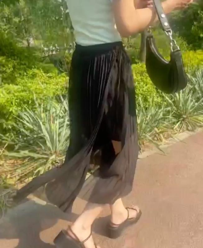 미니스커트위에 쉬폰 플리츠 스커트를 전체 슬릿으로 덧대어 유니크한 감성으로 착용하기 좋은 스커트예요~!