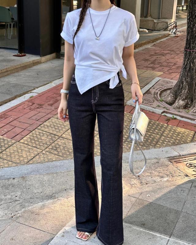 흑청컬러데님의 허벅지가 날씬해보이는 ,