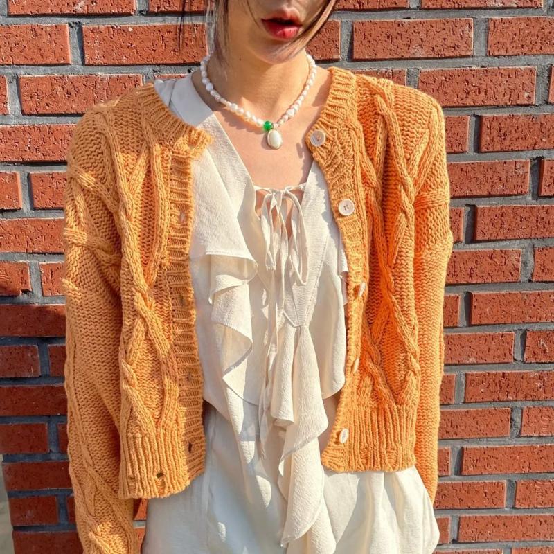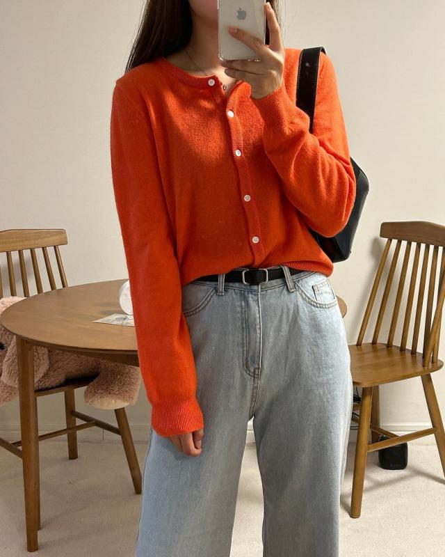 오렌지가디건 여성 라운드 베이직 니트 가디건