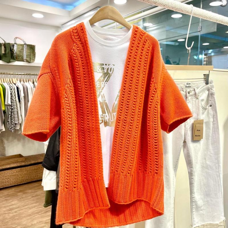 간절기에 입기 딱! 좋은 캐시미어 가디건 반팔가디건이 주는 쎄련됨이 있네요🍊 캐시미어가디건 오렌지가디건 반팔가디건 간절기코디 코헨