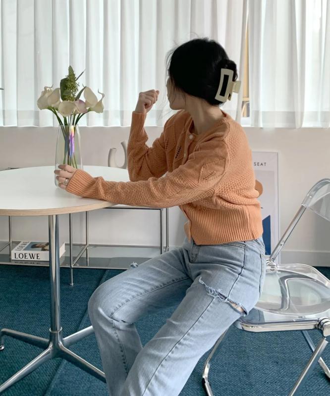 야오야오 레이첼 여름 얇은 가디건 오렌지
