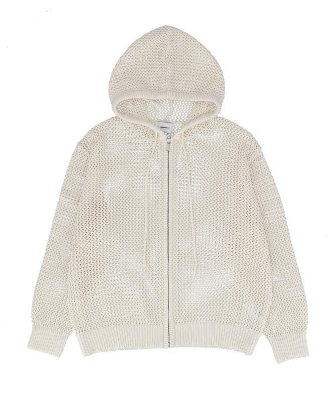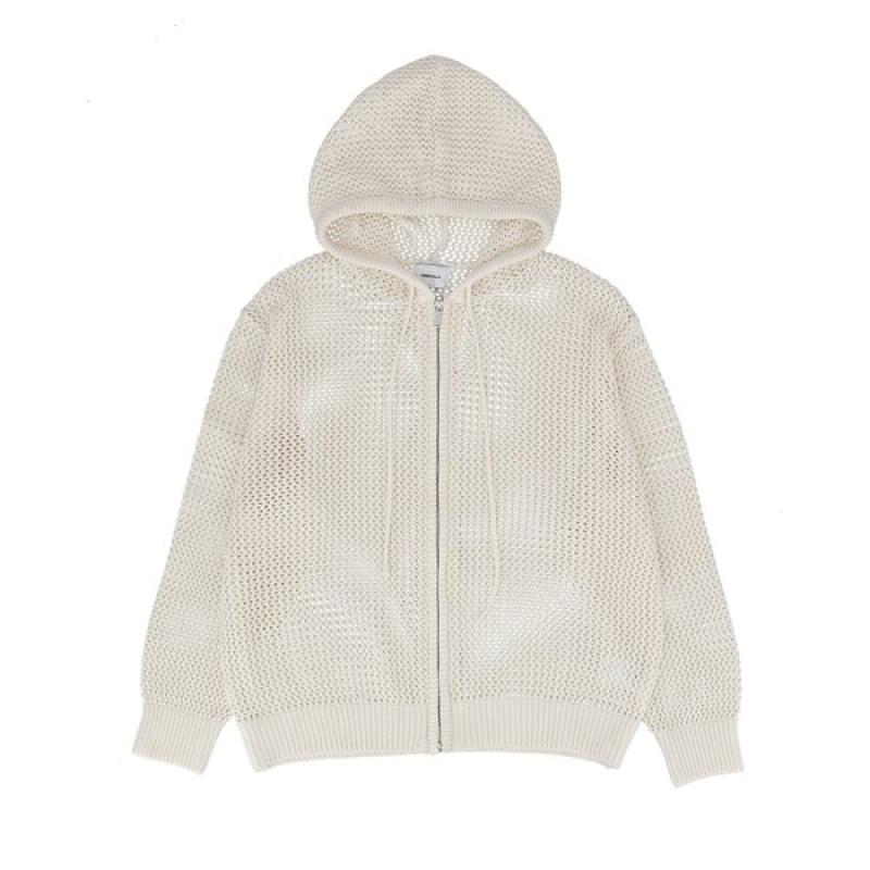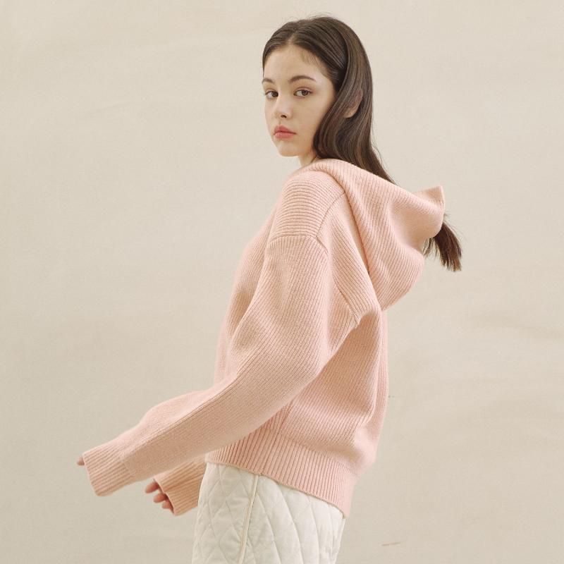 블론드나인 후드 리브 니트 하프 집업 라이트