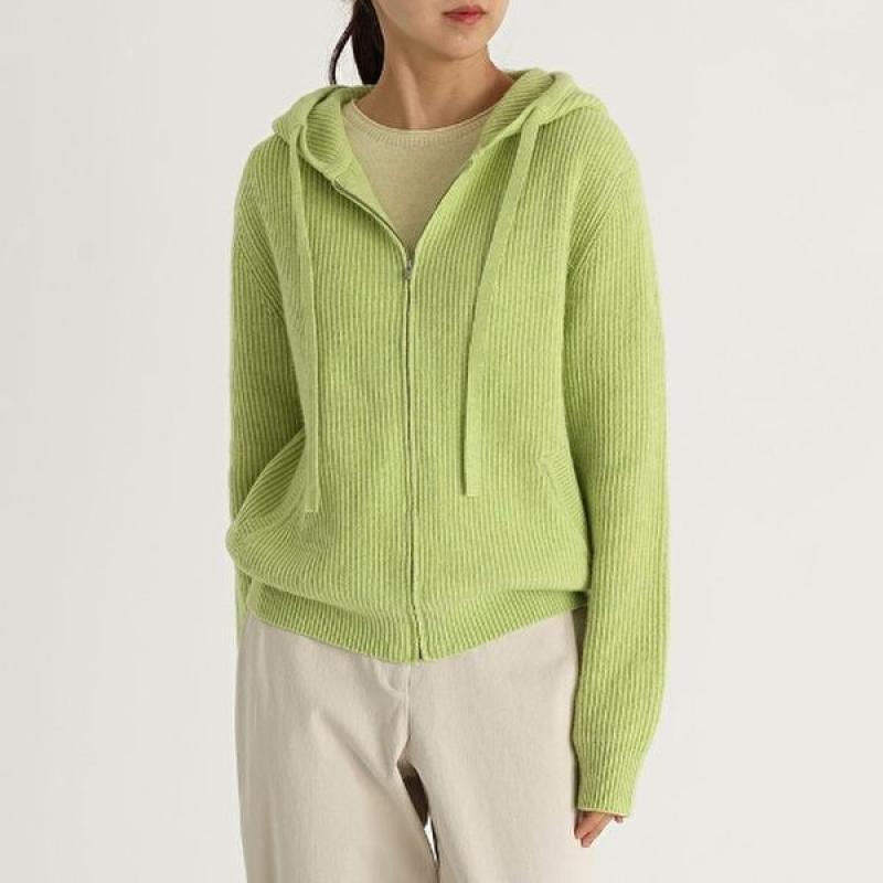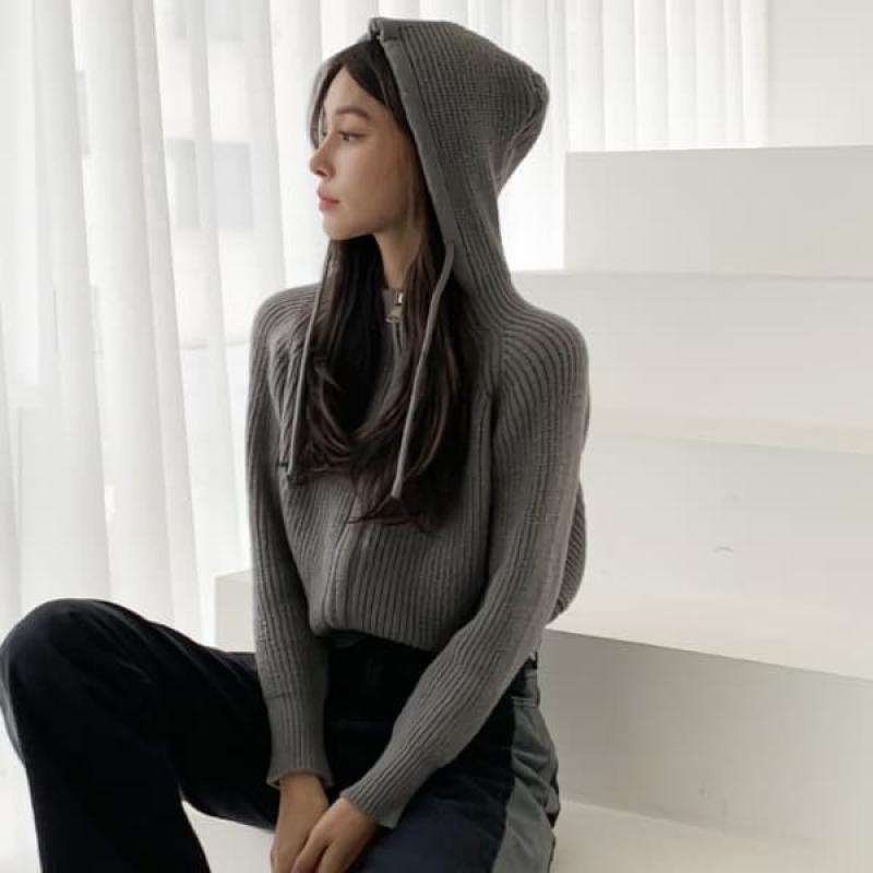 여자 베이직 무지 골지 니트 후드집업 자켓