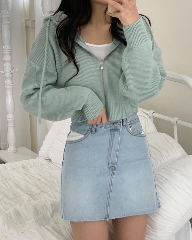 ▫ 부클 루즈핏 크롭 후드 집업 니트 가디건 (6color)