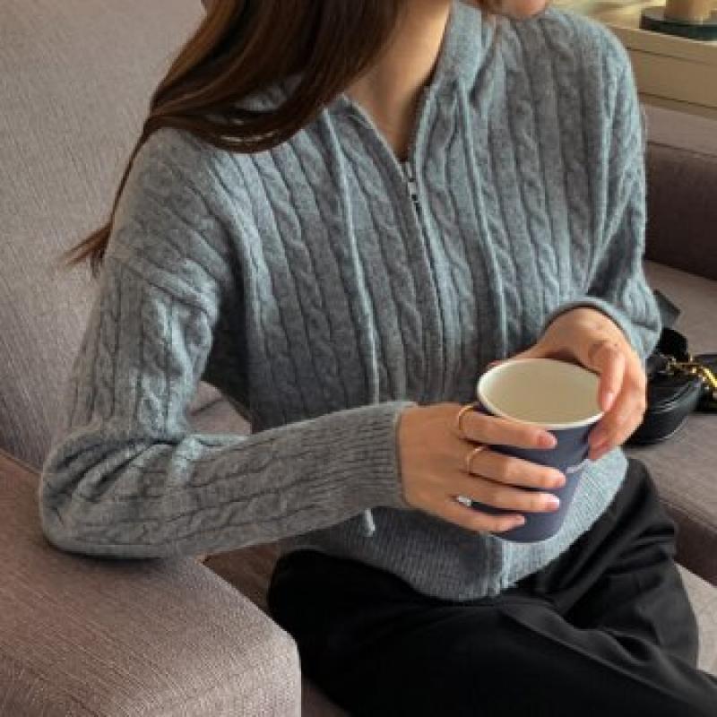 코지 여자 유연한 츄로스 골지 후즈핏 니트 후드집업