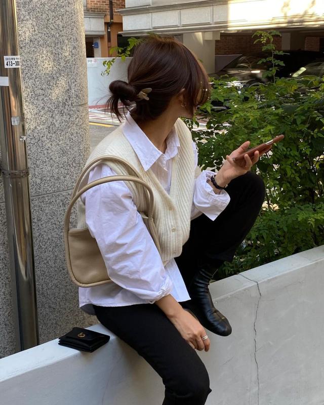 더치버튼베스트 니트조끼 니트베스트 니트조끼코디 여자니트조끼 여자데일리룩 데일리룩 더이지 편하게해줄게요 오오티디 아웃핏 dailylook theeasy ohez makeiteasy ootd outfit yeomim 여밈가방 여밈 미니릿지백 miniridgebag