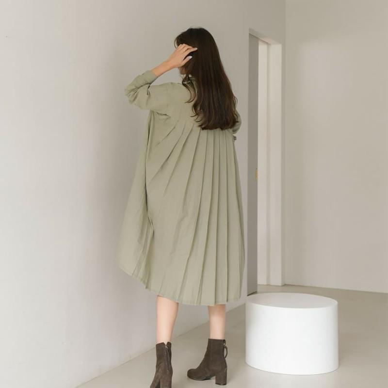 가을 트렌치 롱셔츠 루즈핏 아코디언 주름 원피스NEW