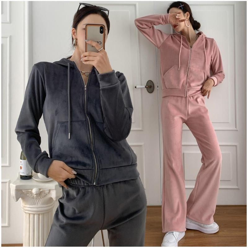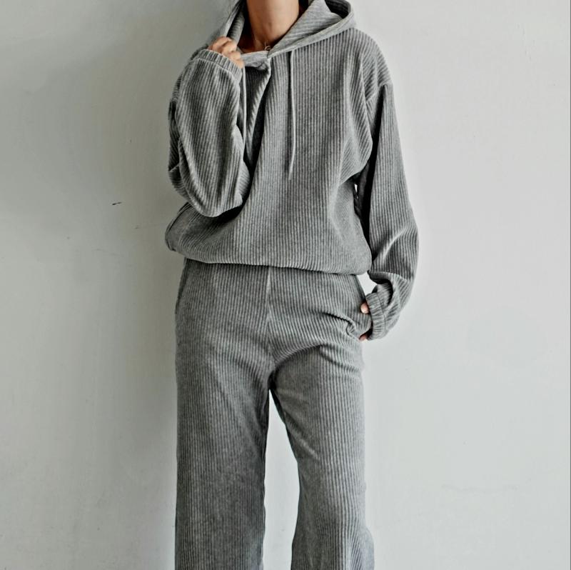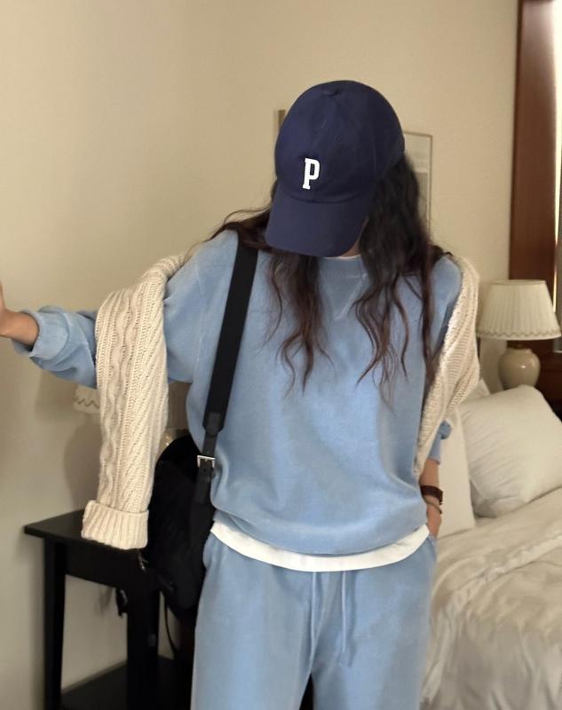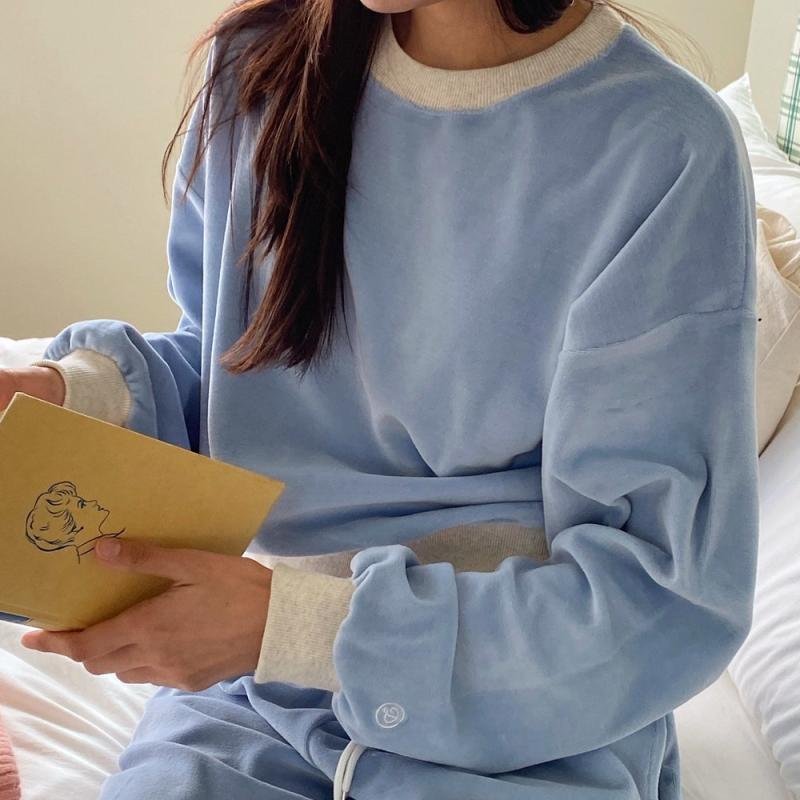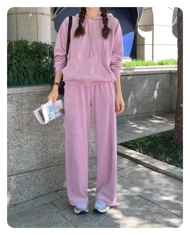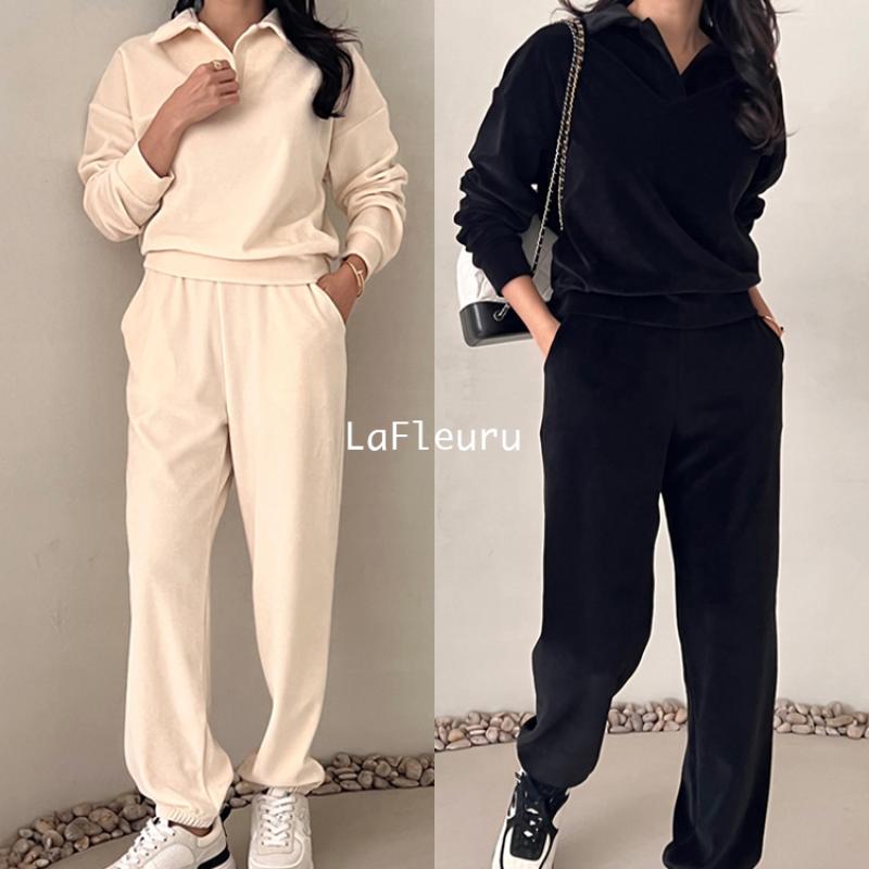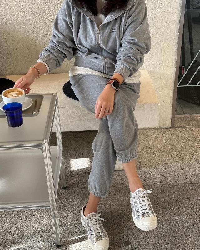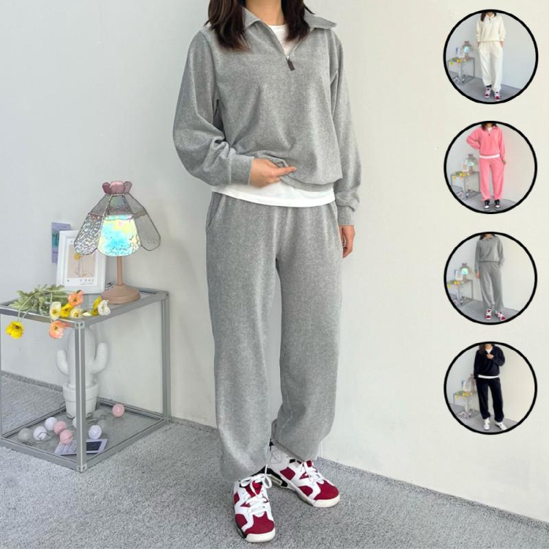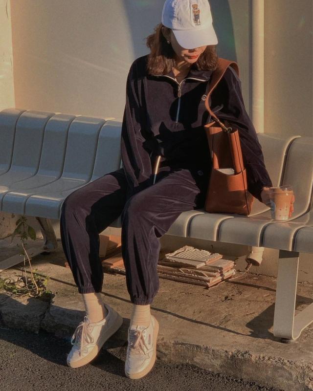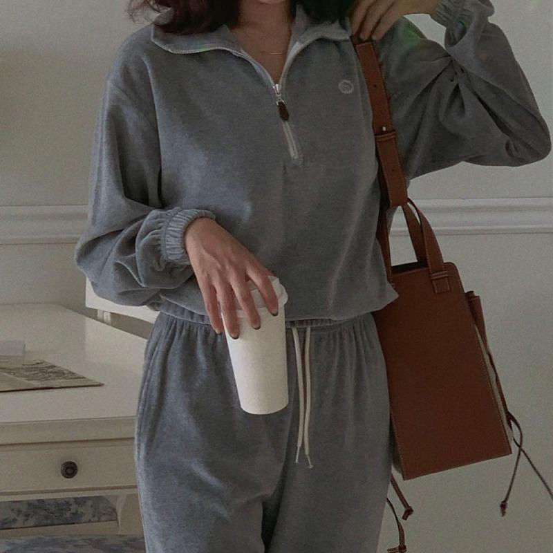 스포티함과 데일리함을 동시에 연출할 수 있는 코튼 벨벳 셋업