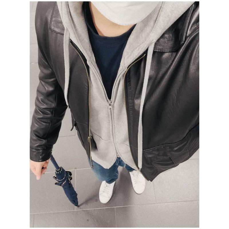 가죽자켓코디 양가죽자켓 램스킨 그레이후드 솔티 아디다스 스탠스미스