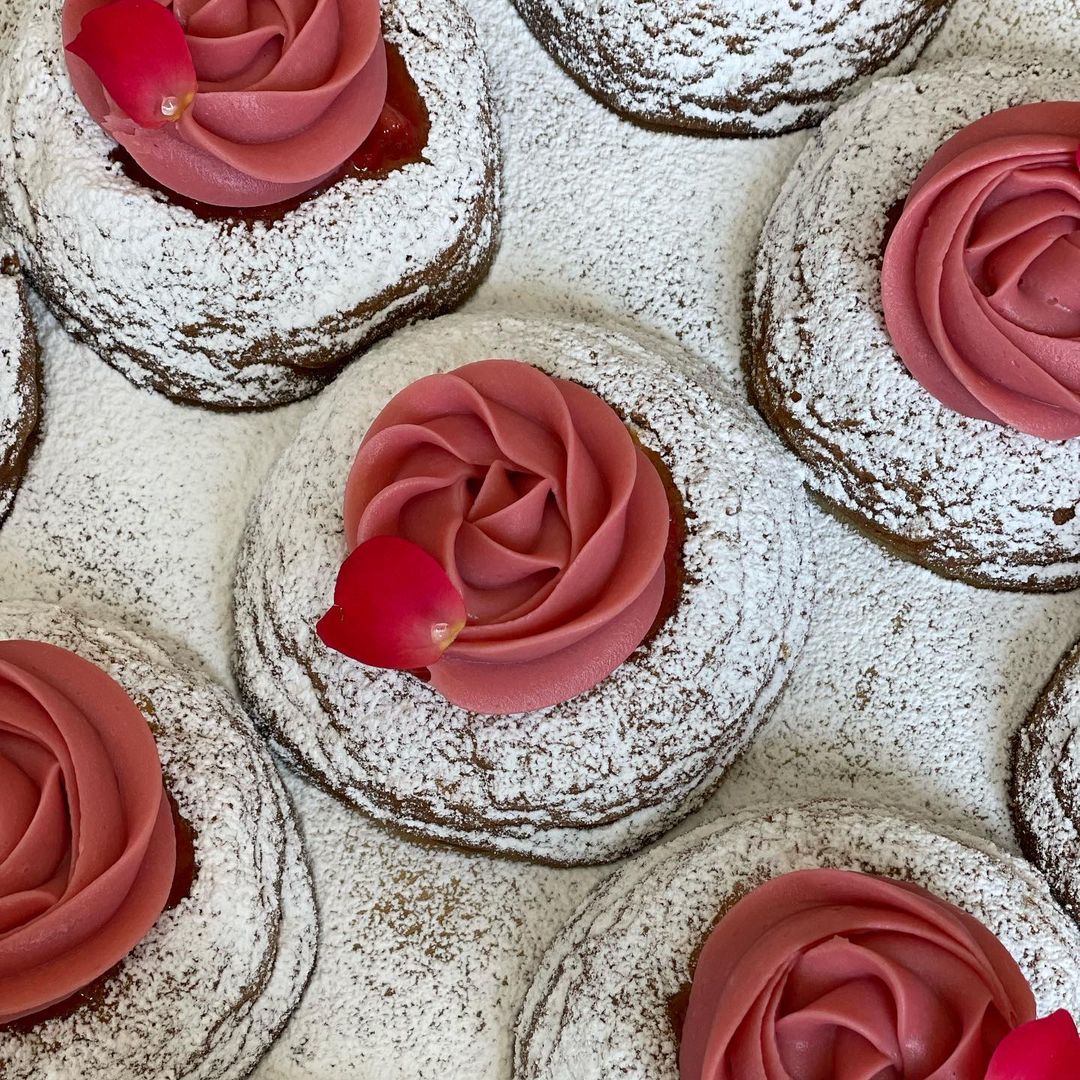 다가오는 봄과 아주 잘 어울리는 쿠키가 나왔어요. 새콤 달콤한 설향딸기 콩포트와 향긋한 라즈베리 로즈 가나슈를 장미 모양으로 올렸습니다.