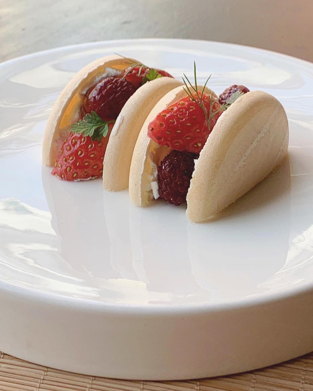 상콤한 과일과 바질을 채운 모나카 준비되어잇습니다 ^^