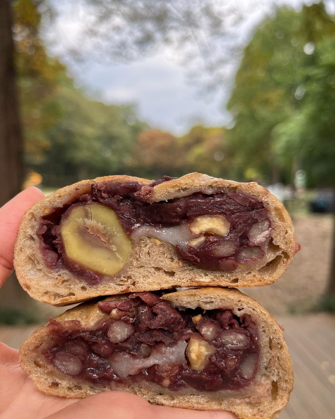 달달하지만 희와나 흔한 팥빵보다는 덜 달고 하츠 30보다는 더 달달한~ 거기에 밤이 완전 잘 익어서 밤은 달달구리하고 밤 맛이 찐해요🌰 빵피가 너무 인상깊었지만 팥 때문에 인기가 정말 많을 것 같은 빵!! 4조각이라 아쉬울 뿐ㅠ