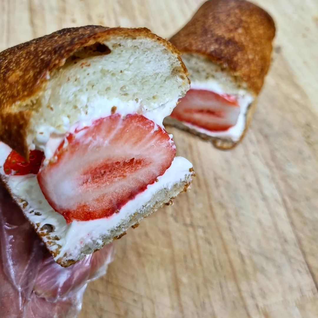 생크치. 천연발효빵에 대해 거부감을 가진 사람들을 위해 사장님이 개발한 빵이다. 바게트를 굽고 생크림과 크림치즈를 듬뿍 바른 뒤 생과일을 샌드한다. 맛있게 먹고 입천장 홀랑 다 까진 슬픈 바게트 시식기가 여기엔 없다. 과장을 약간 보태어 반미처럼 바삭하게 씹히고 바스라지는 바게트. 여기에 정말 맛있는 생크림 케이크가 통째로 들어간 느낌이다. 식사빵 러버와 간식빵 러버가 여기에서는 다툴 필요가 없다.