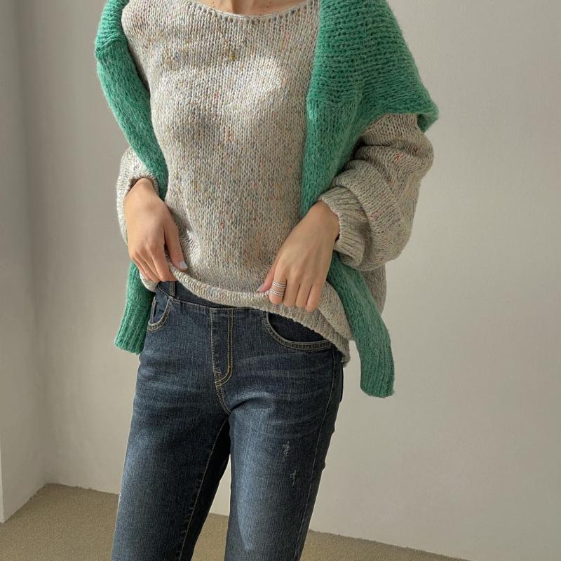 베이직한 컬러감에 다양한 색상의 원사가 섞여있어