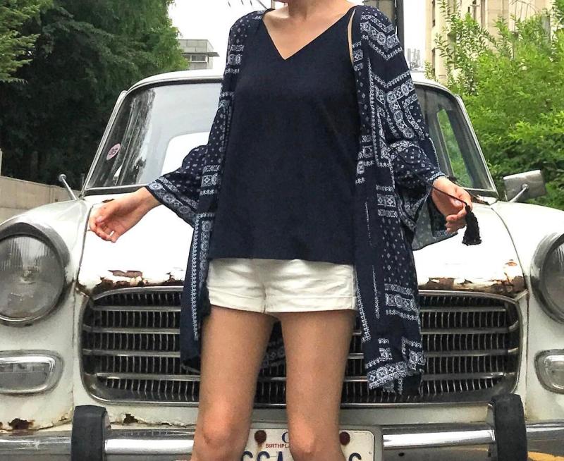 블루샴페인 데일리룩 오오티디 젊줌마룩 줌마룩 미시룩 심플룩 휴가지룩 여름가디건 로브가디건 로브 비치가디건 dailylook ootd fashion style